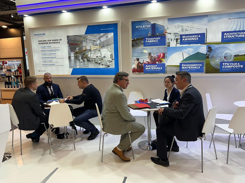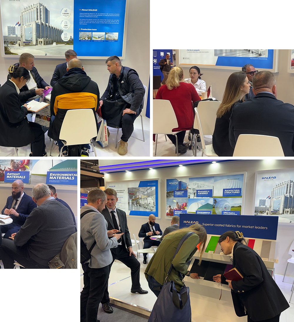 展会期间,公司接待了来自欧洲、土耳其、印度、美洲、南非、日本等国家的200余名新老客户。同时,我们还捕捉到英国、土耳其等非欧盟国家对篷布产品的需求有激增的趋势,这为我们在国际市场上的扩展提供了机遇和潜力。
